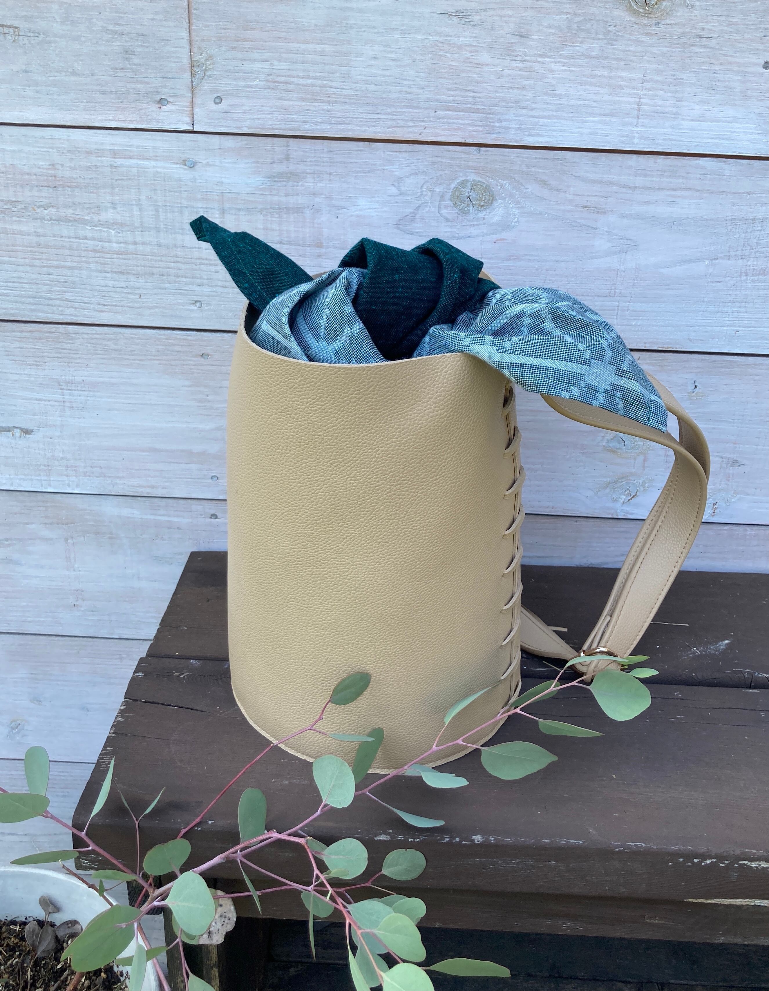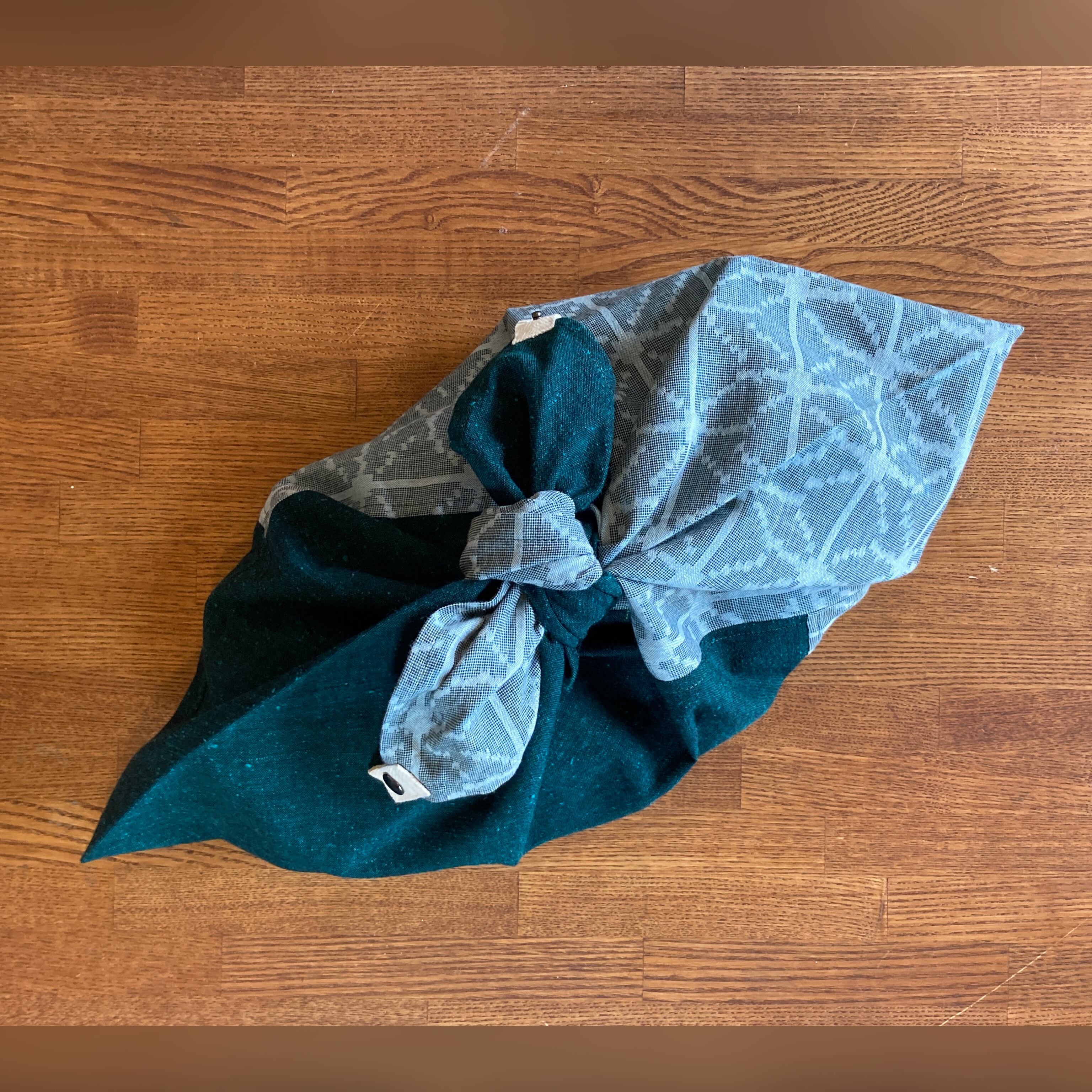 ③中に入れるものの大きさに合わせて、きつく結ぶと、風呂敷のように包むこともできます。