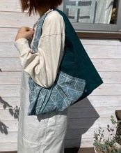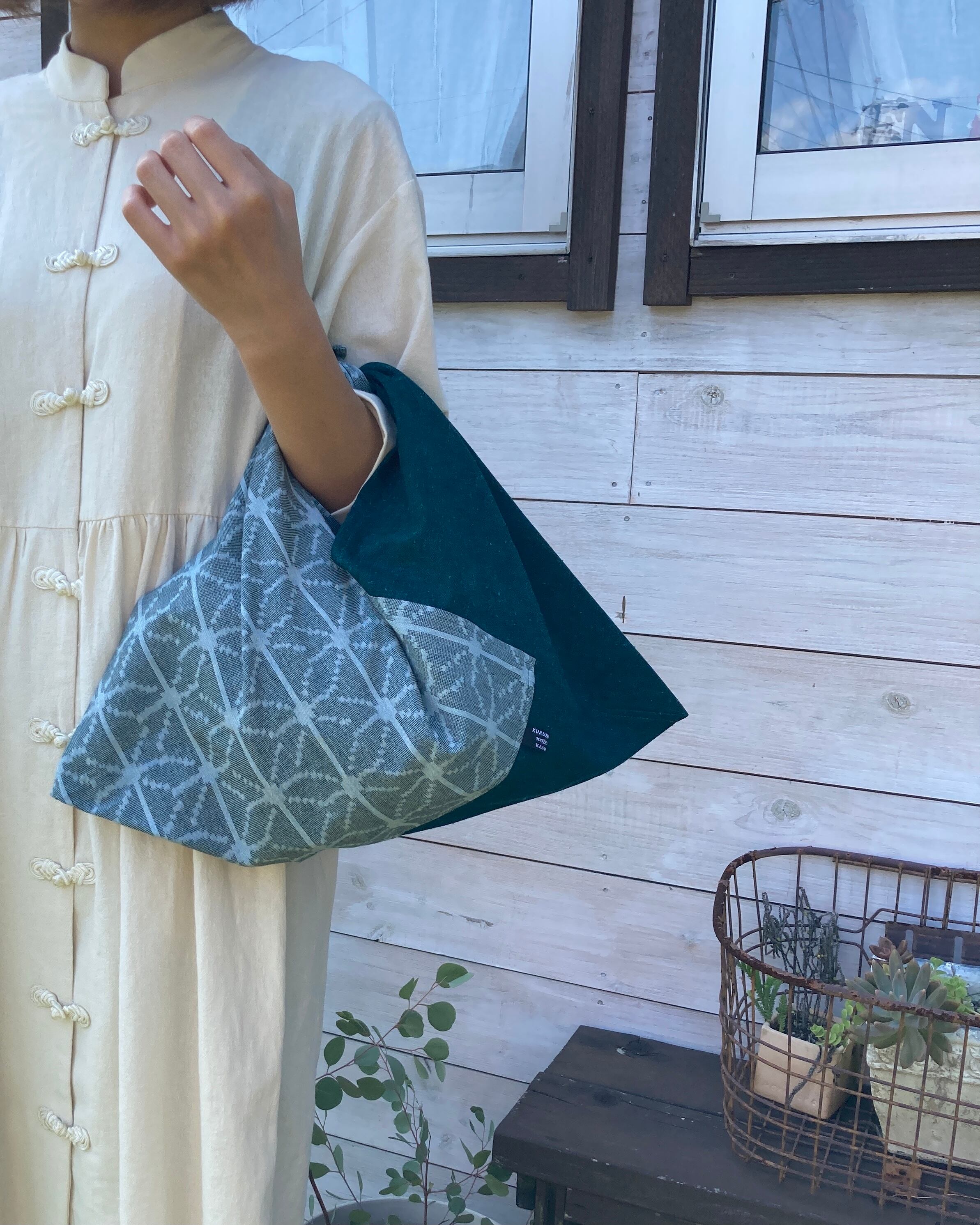 久留米絣のあづま袋(麻の葉✖︎無地)