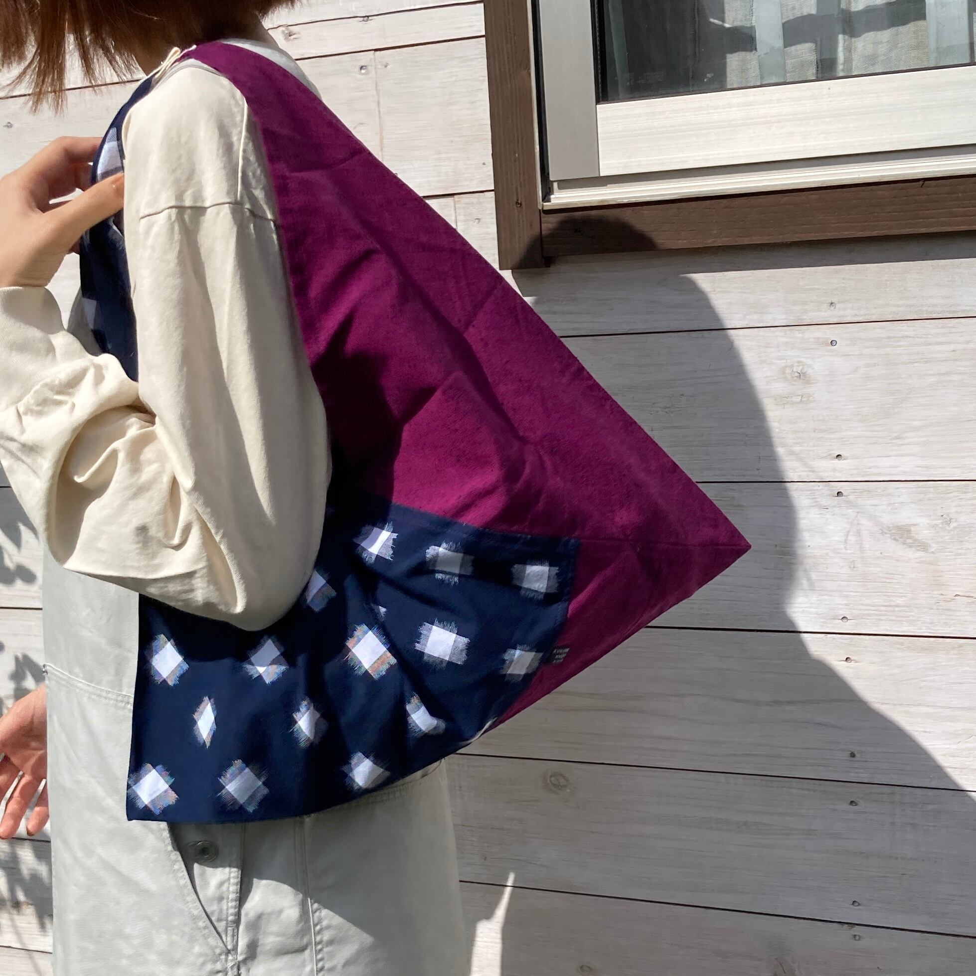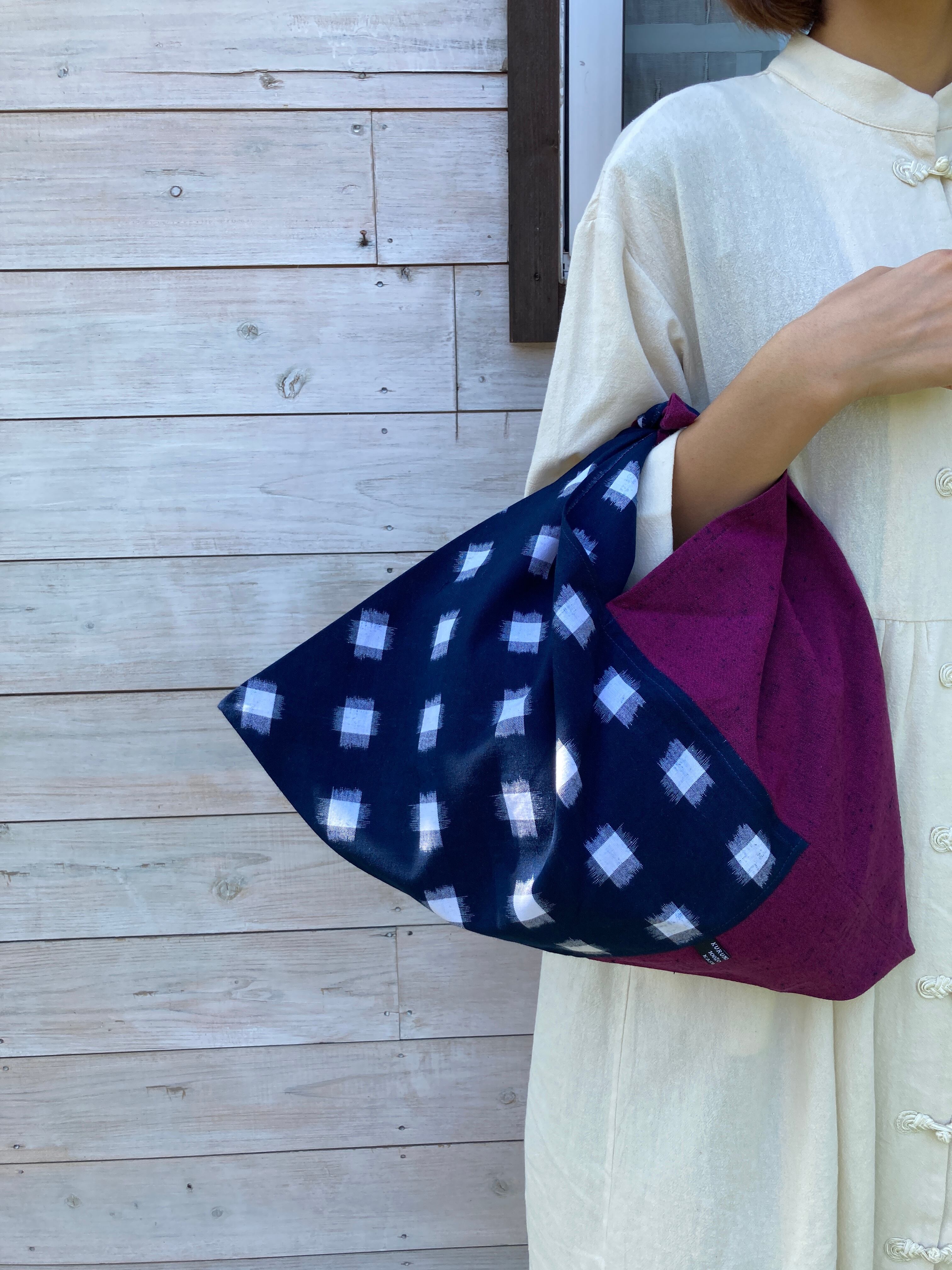 久留米絣のあづま袋(重ねあられ✖︎無地)