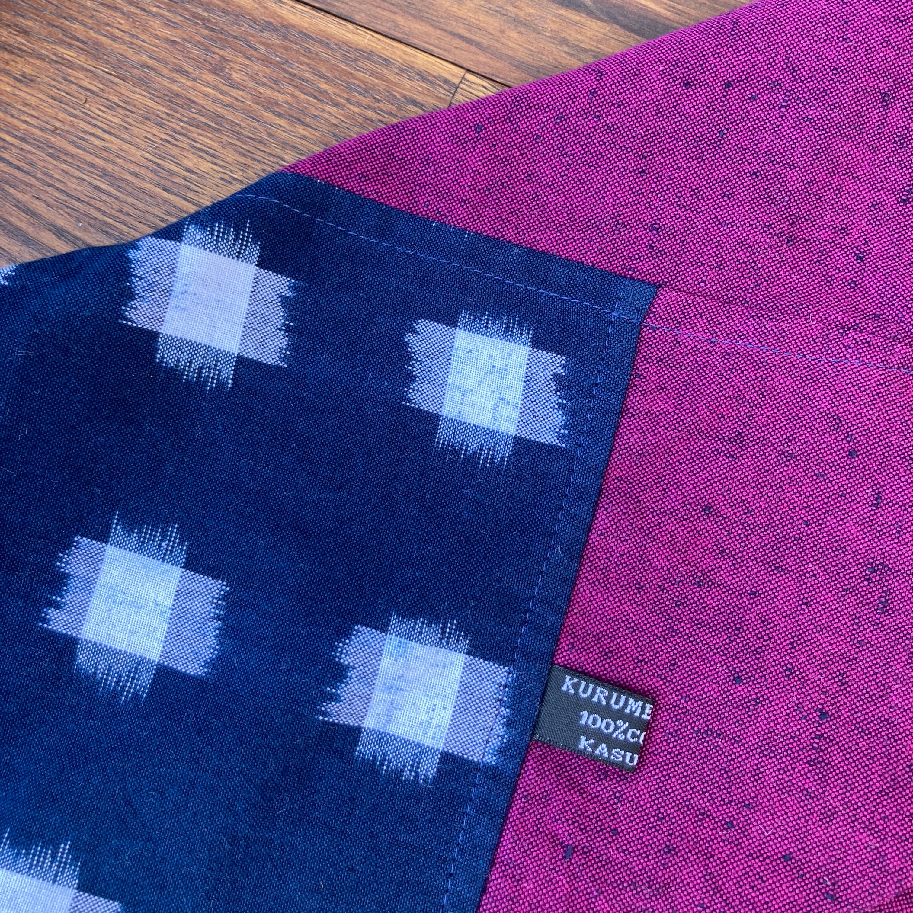 久留米絣の産地福岡県在住の縫製作家がひとつひとつ丁寧に仕立てました。生地のつなぎ目は、全て折りふせ縫いを施し、裏面も美しく仕上げました。