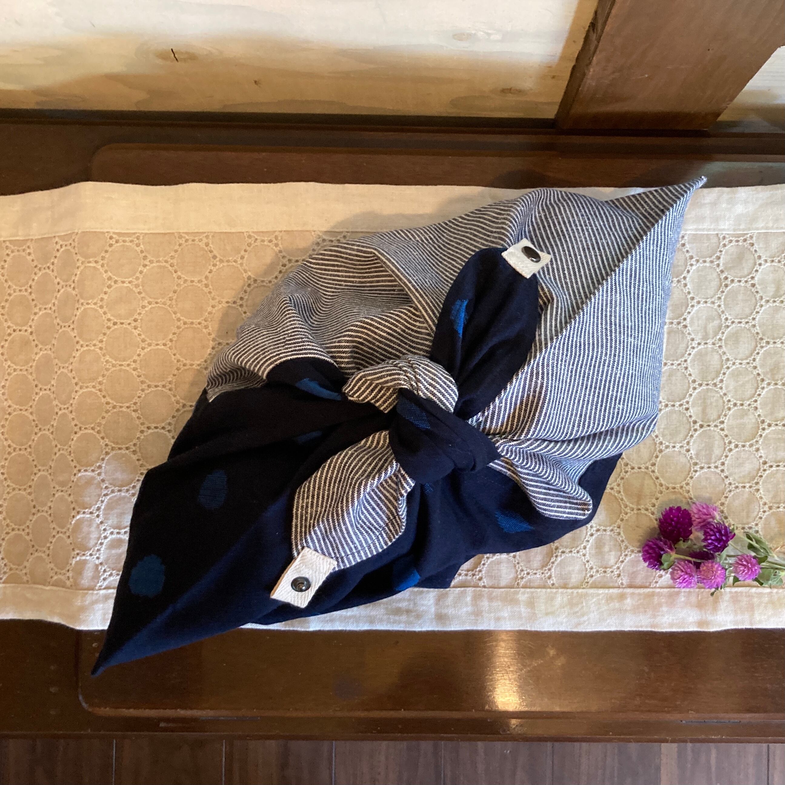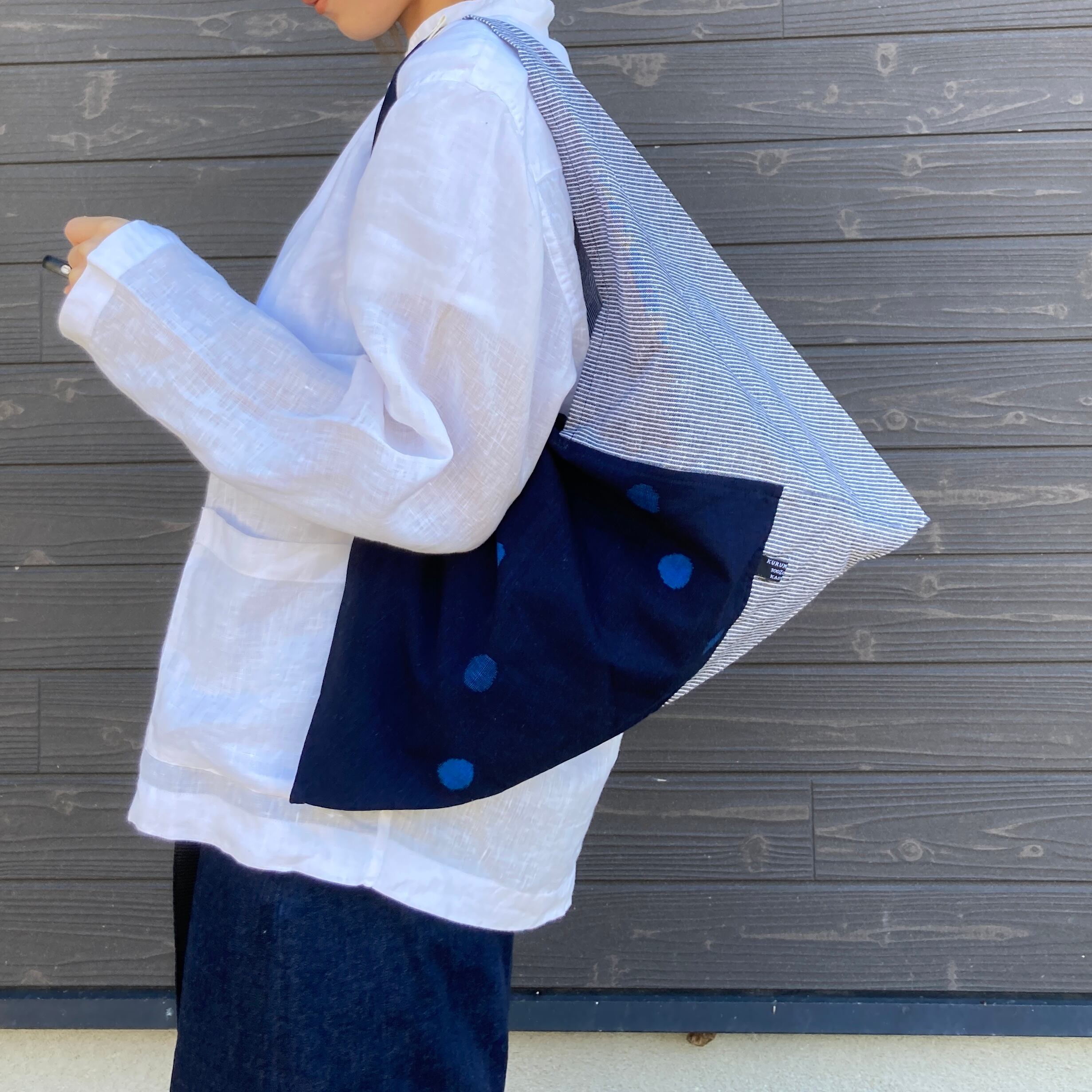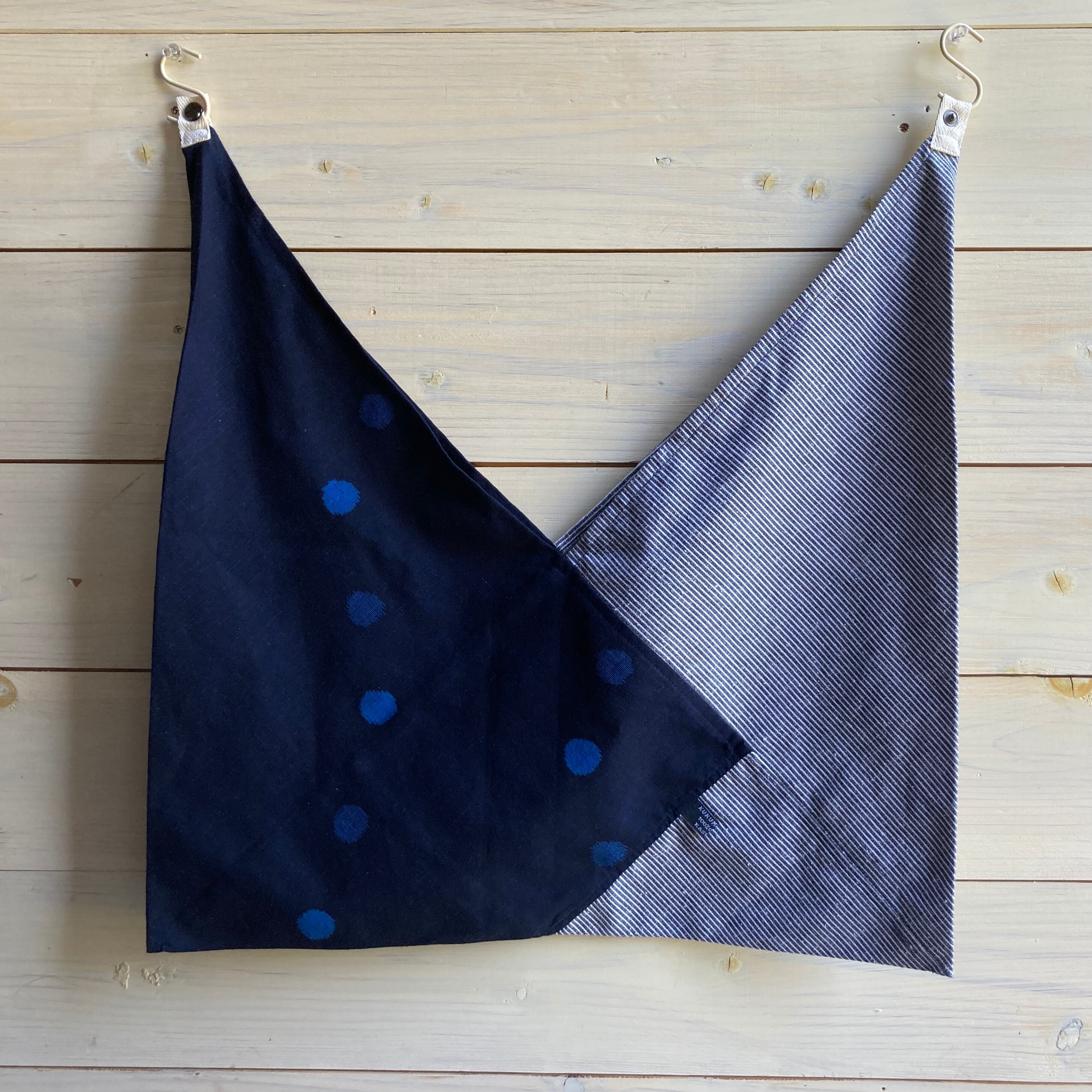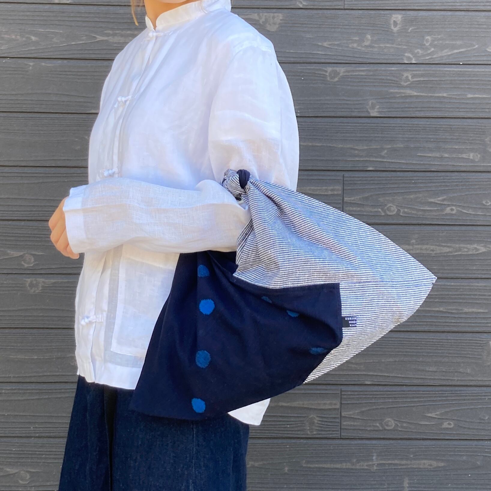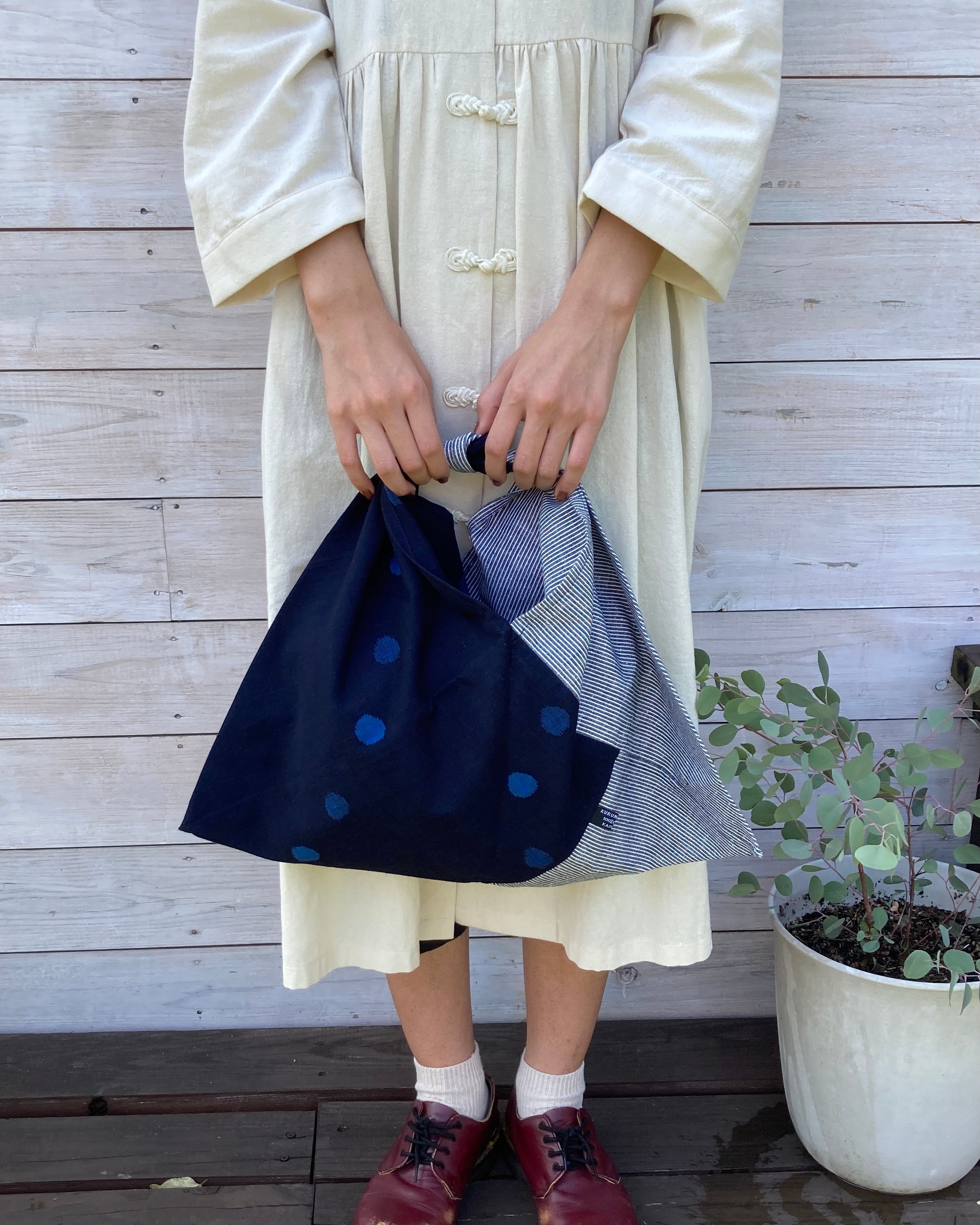 久留米絣のあづま袋(流れ水玉✖︎小縞)