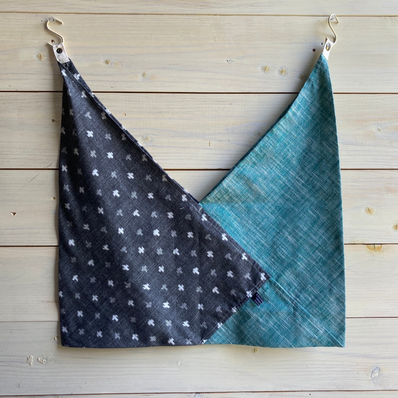 久留米絣のあづま袋(十字グレー系✖︎無地)