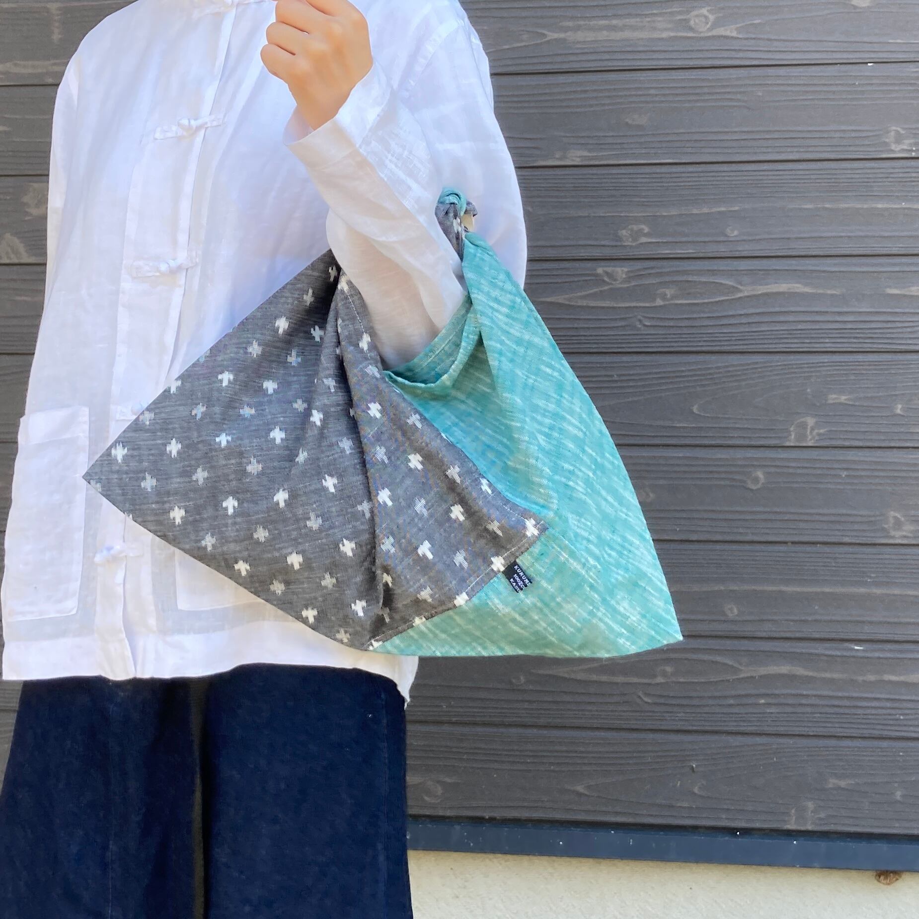 #あづま袋#久留米絣#kurumekasuri#和小物#和雑貨#大人女子#絣のバッグ#大人かわいいバッグ#出産祝い#敬老の日#母の日#グリーンのバッグ#絣好き#プチプラバッグ
