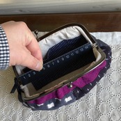 どこか懐かしい色合いと温かみのある風合いの久留米絣とがま口の組み合わせで、